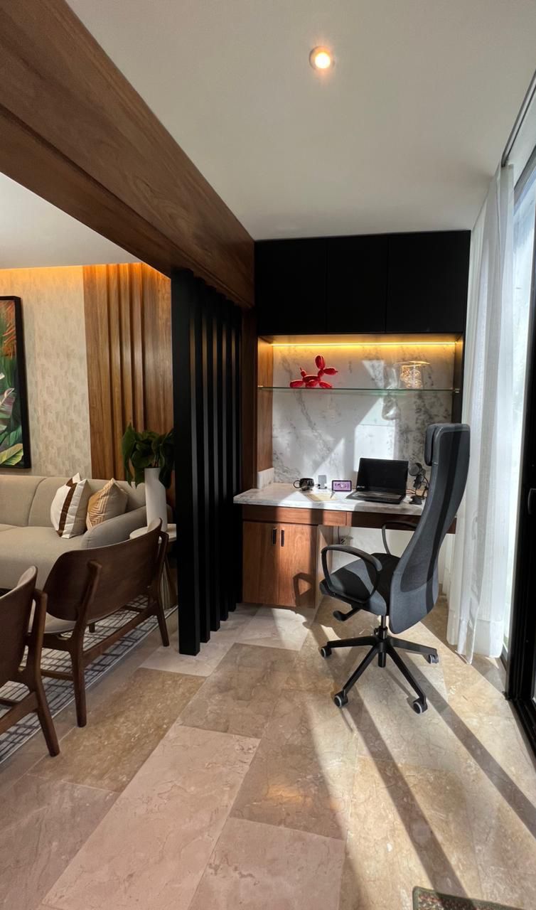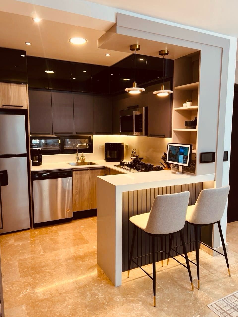 -Toda la cocina totalmente hecha, no la que trae el apartamento y todo de mayor calidad como estufa, microondas, nevera etc,