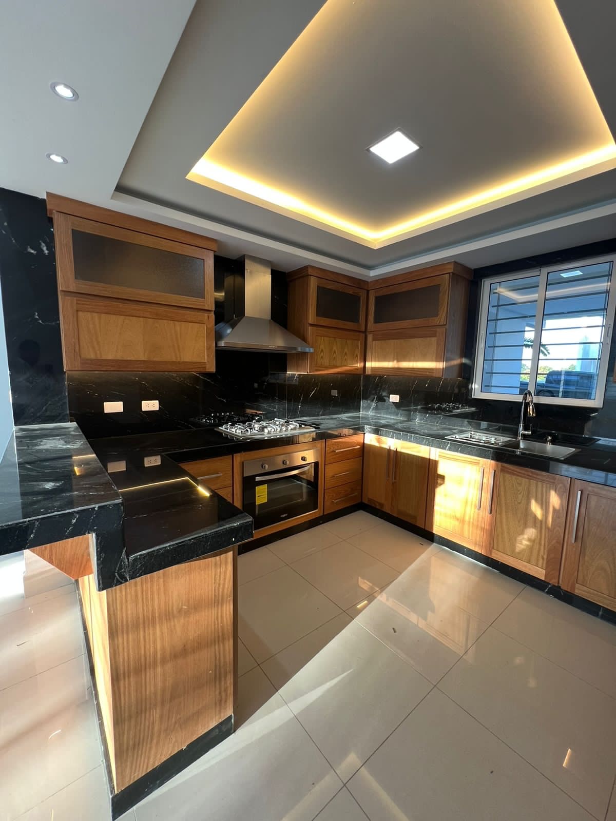 -Cocina con desayunador, incluye: (Estufa, Horno, Extractor de grasa)