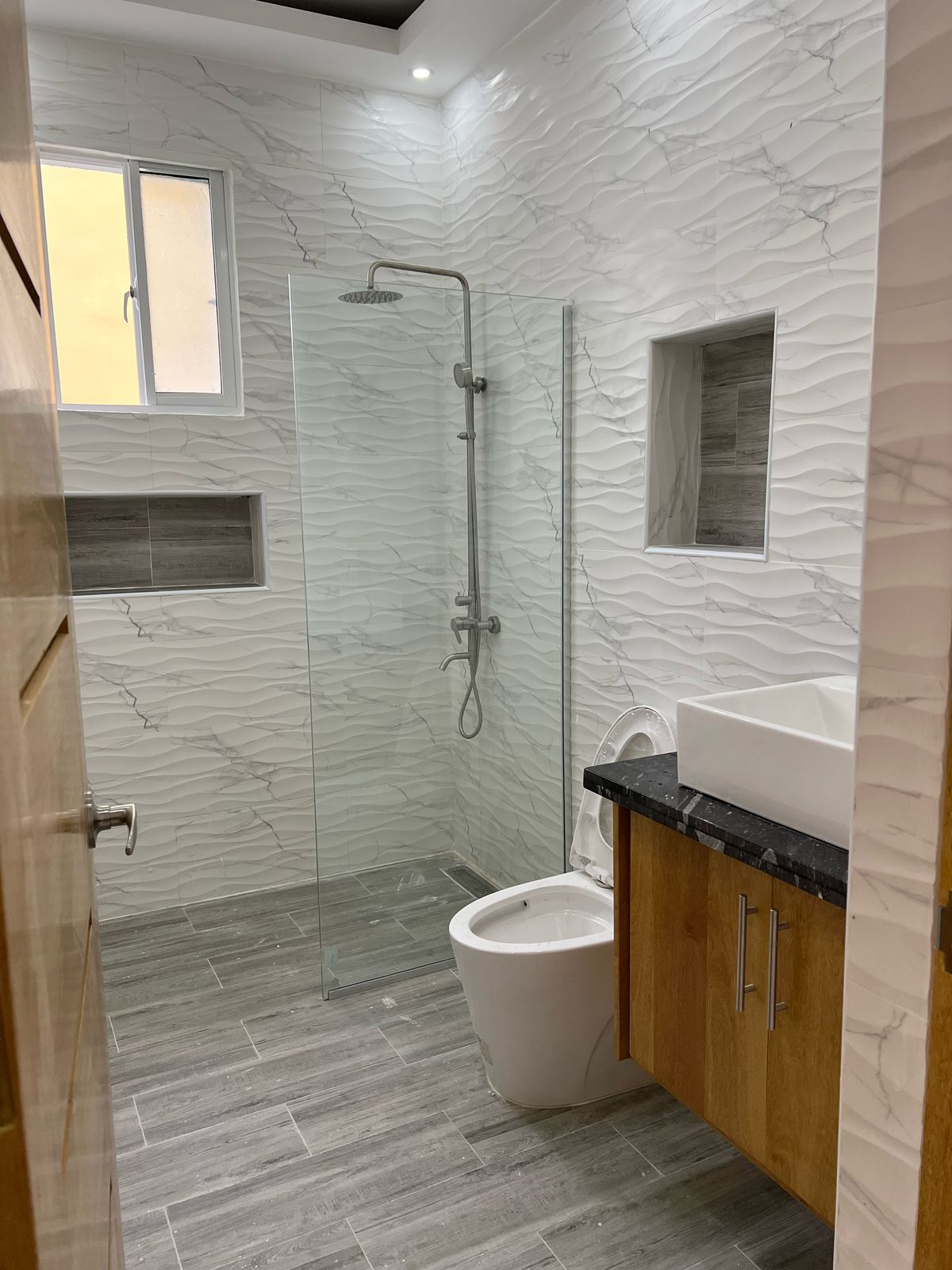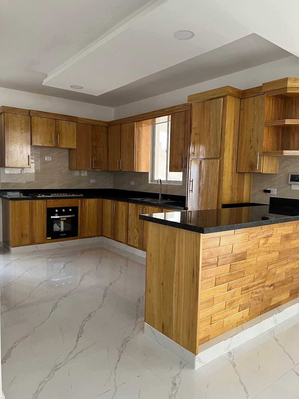 Terminaciones en porcelanato, roble 🚪y granito natural